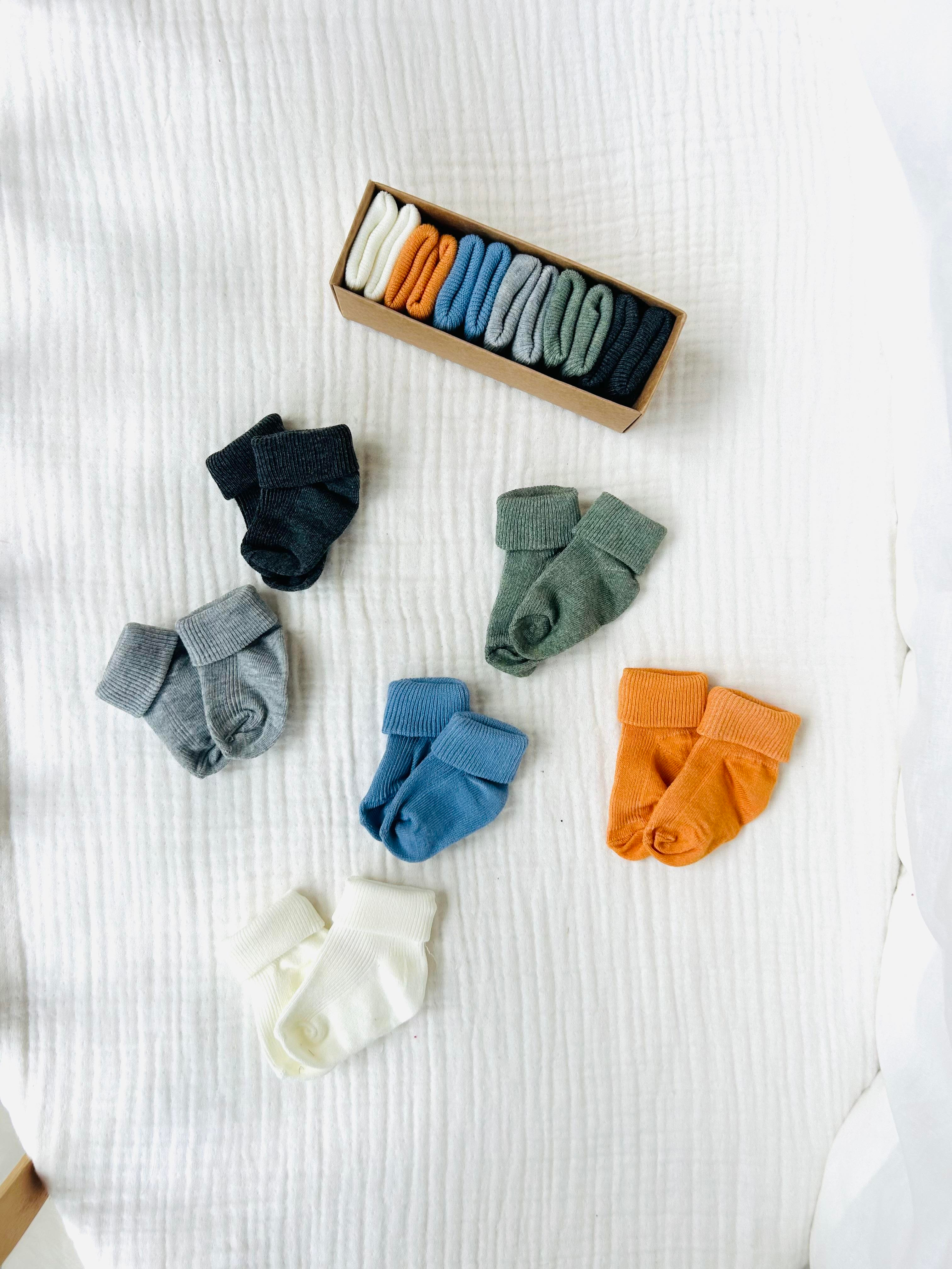Kutunun içindeki her çift, günlük kullanım için idealdir. Renkli ve sevimli tasarımları sayesinde hem annelerin favorisi hem de harika bir yenidoğan hediyesi alternatifi.