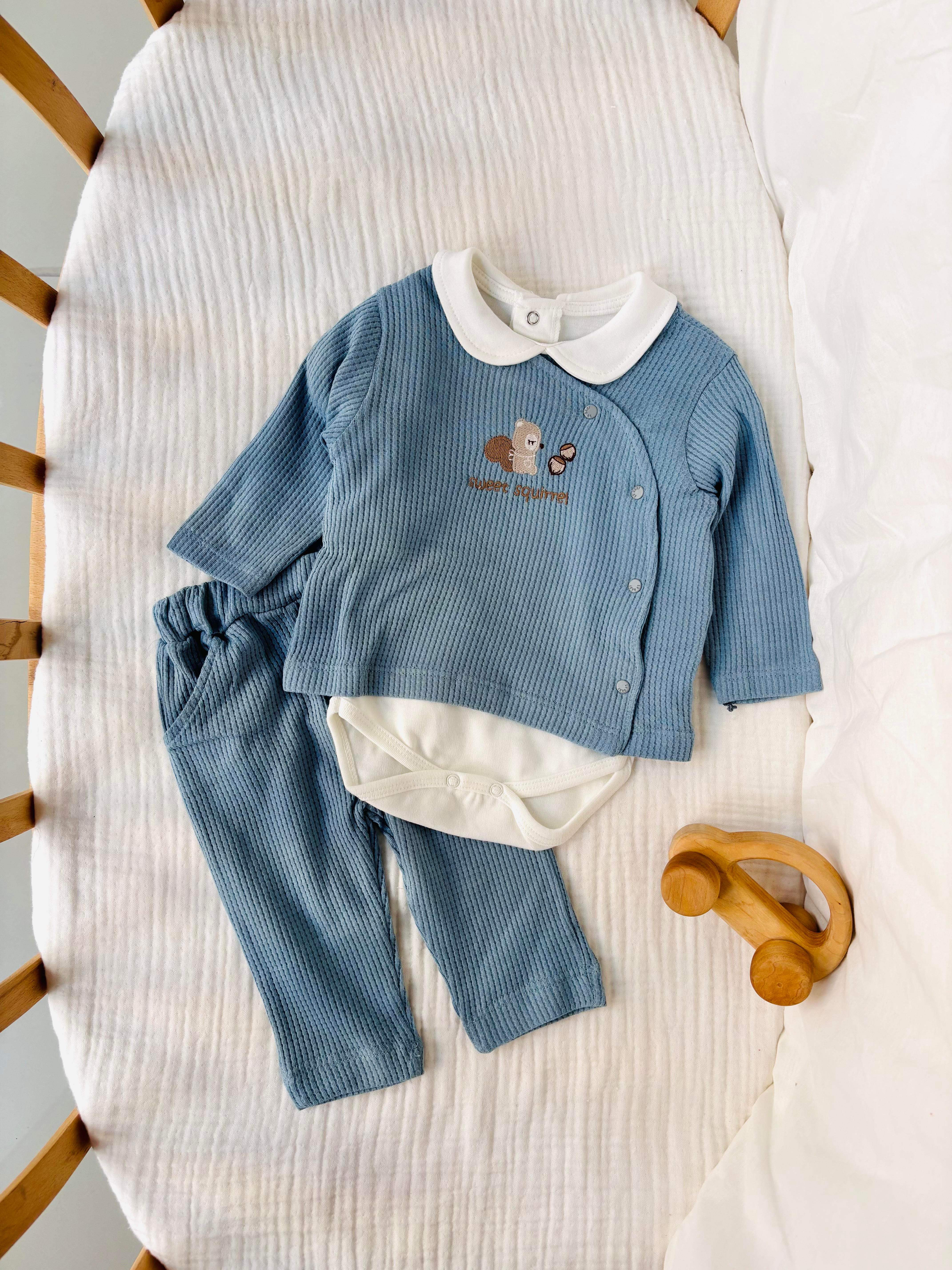 Sweet 3 Parça Waffle Kumaş Takım - Mavi