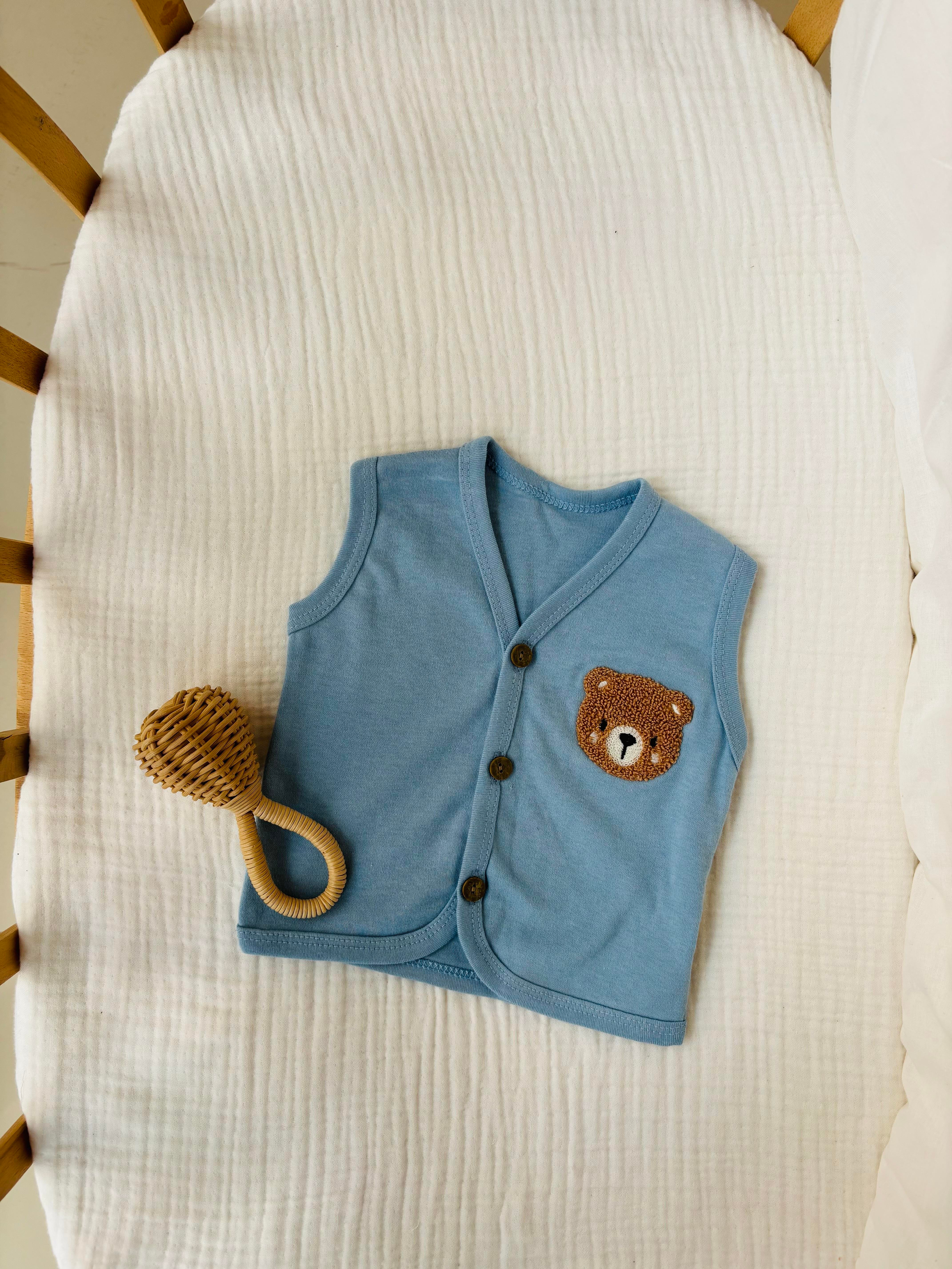 Teddy Punch İşlemeli Yelek - Kahve Teddy Punch İşlemeli Yelek - Beyaz