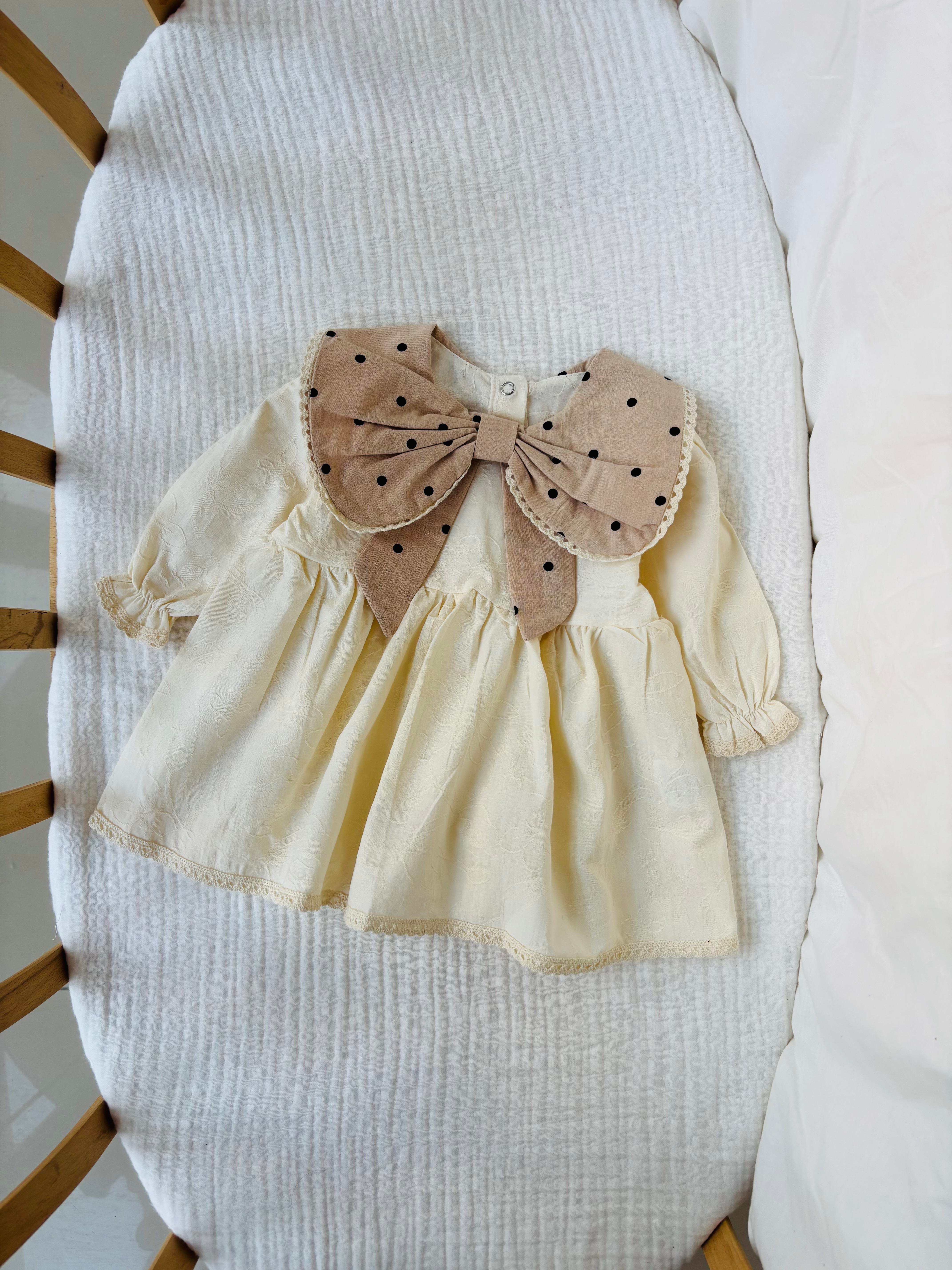 Violet Yakası Puanlı Elbise - Krem